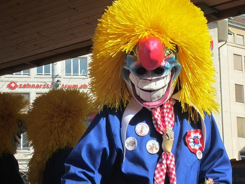 Other interns went for the 4am parade and celebration but I waited until the Wednesday to drop into Basel for the final parade, taking a few hours off of work. Cliques are a group of people dressed in a uniformed theme that march in the parades playing the piccolo, drums, flutes, etc. Floats are a means of transportation for the uniquely masked participants to throw candy, flowers, confetti and sometimes large root vegetables into the crowd of onlookers.